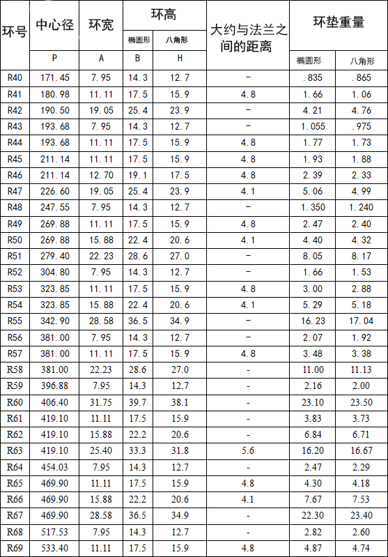 flexftallic风格R环式节点可以制造符合有关标准符合以下法兰代号