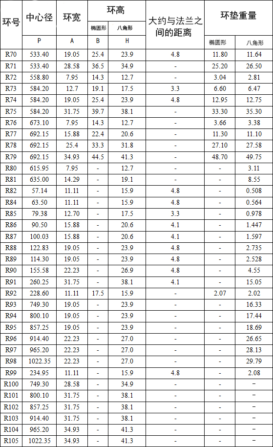 flexftallic风格R环式节点可以制造符合有关标准符合以下法兰代号